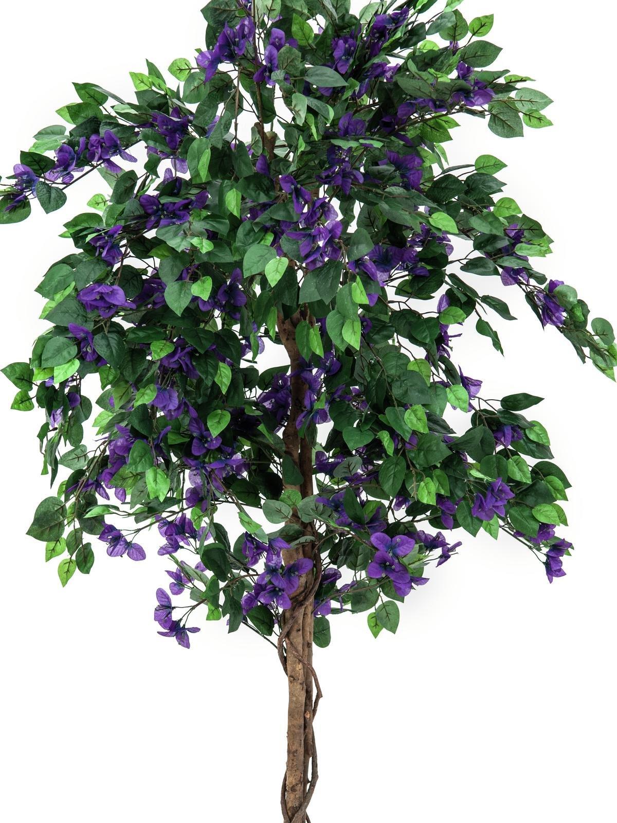 Ursprünglich stammt die echte Bougainvillea – auch Drillingsblume genannt – aus Südamerika. In südlichen Ländern finden wir die wunderschöne, in kräftigen Farben leuchtende Kletterpflanze hauptsächlich in Gärten und als Fassadenberankung.Holen Sie sich mit Europalms diesen blühenden Blickfang in Form eines wunderschönen Kunstbaumes in Ihre Räumlichkeiten.Mit einer Gesamthöhe von ca. 180 cm ist die Bougainvillea nicht zu übersehen und das ideale Dekorations-Element für Ihre Feierlichkeiten. Einen schönen Kontrast zum satten Grün der spitz zulaufenden Laubblätter bildet die intensive Farbe der Hochblätter, in deren Mitte die eigentlichen Blüten sitzen. Den Hochstamm bilden 3 Naturstämme an denen sich Lianen hochranken.Im Gegensatz zu ihrem natürlichen Vorbild, hat die künstliche Bougainvillea keine Dornen.Im Lieferumfang ist ein Basis-Gärtnertopf enthalten, welcher der Pflanze einen stabilen Stand bei Einstellen in einen Übertopf gibt.